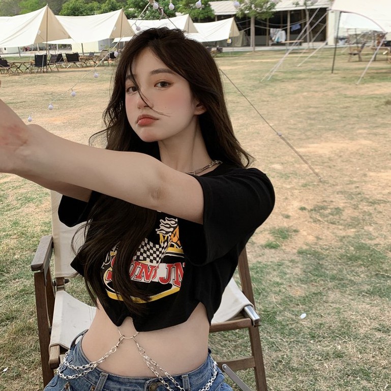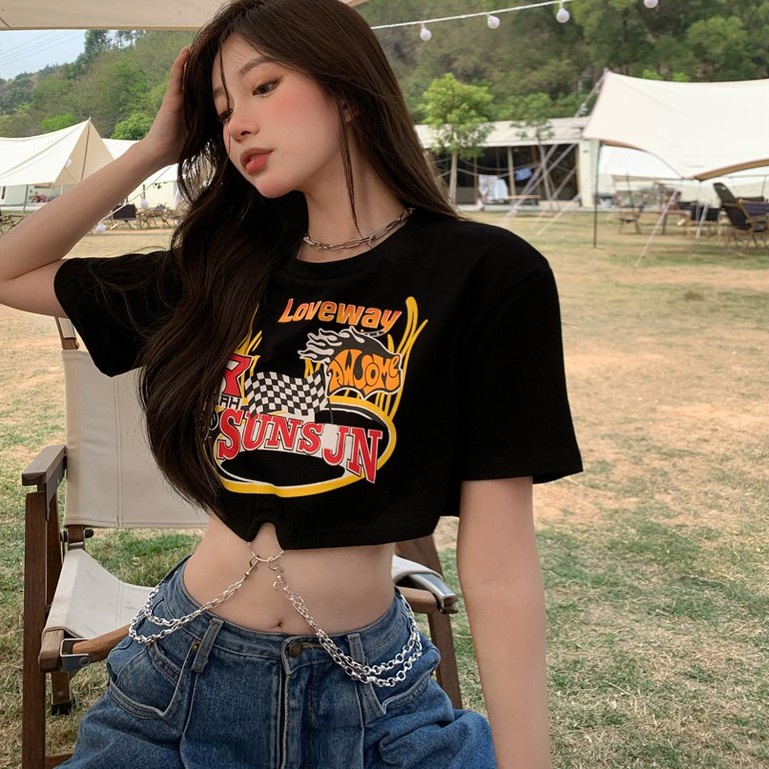 Áo Thun Ngắn Tay Màu Đen Thời Trang Mùa Hè Hàn Quốc Cho Nữ free ship