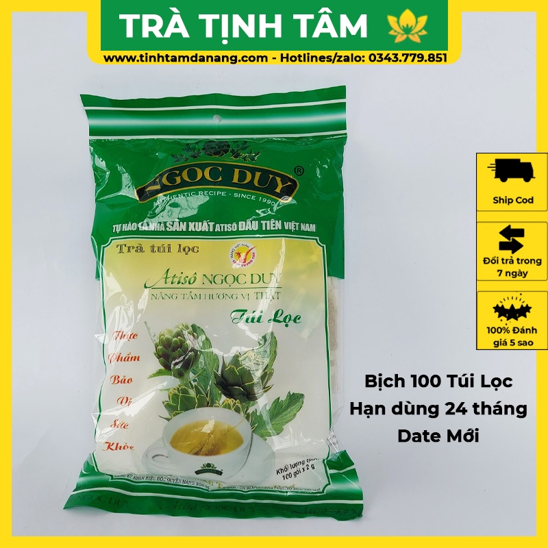 Freeship- Trà túi lọc atiso Ngọc Duy gói xanh Đà Lạt, bịch 100 túi lọc hỗ trợ giảm cân đặc sản làm quà mua tại đây